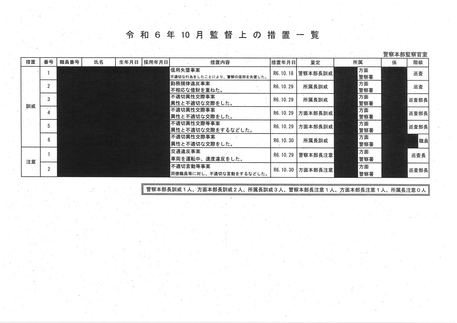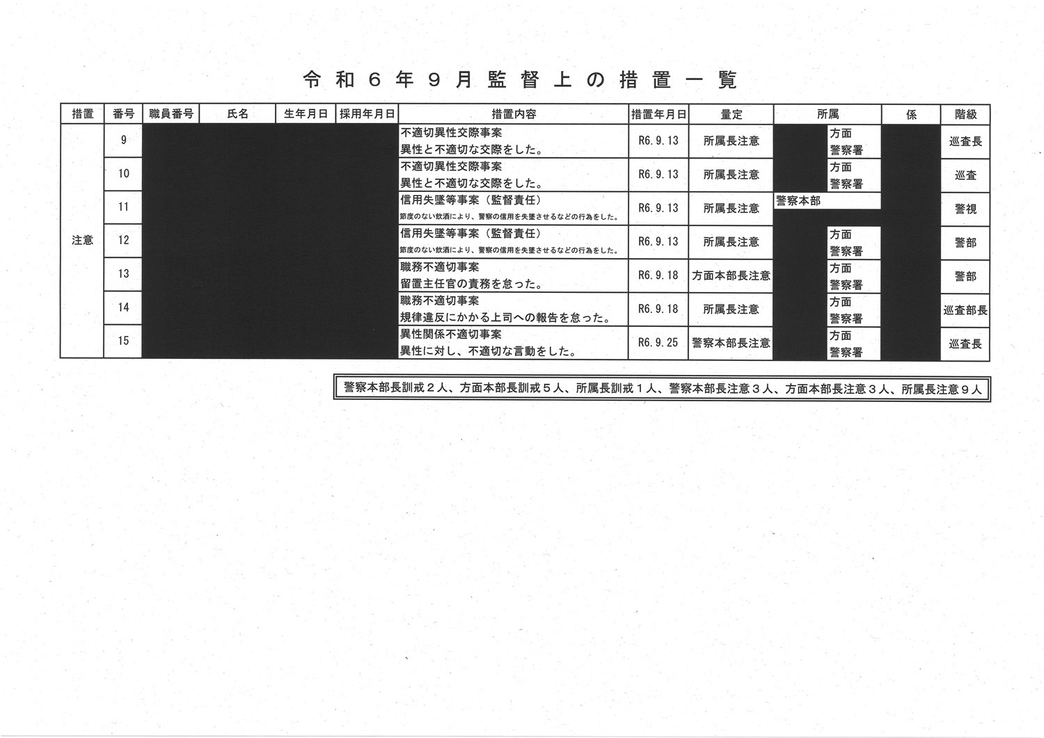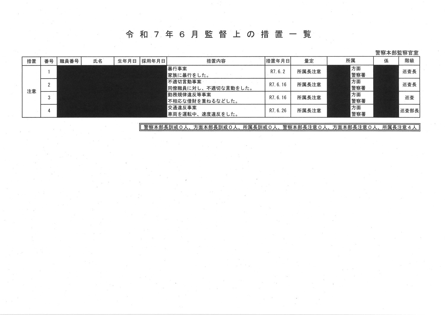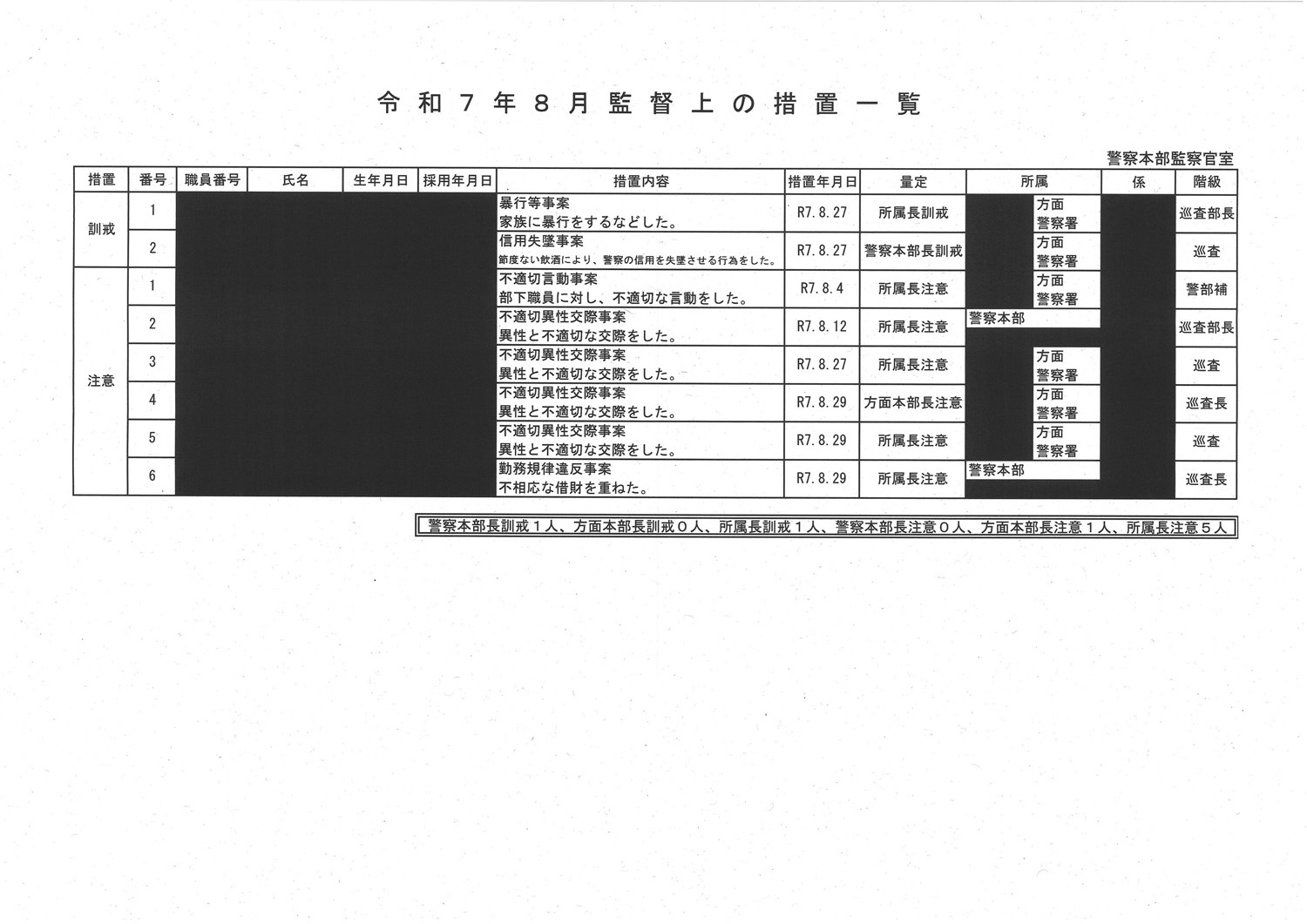 警察庁の『指針』では、勤務時間外の不祥事で「減給」以下の事案は報道発表の対象とならない