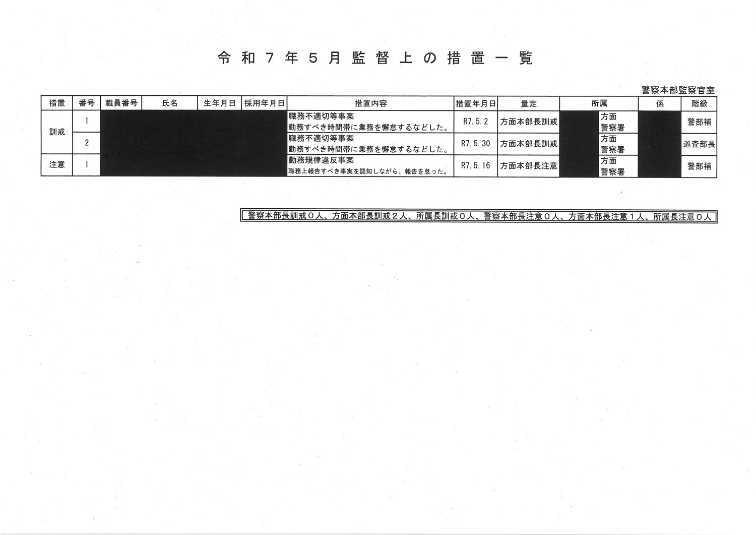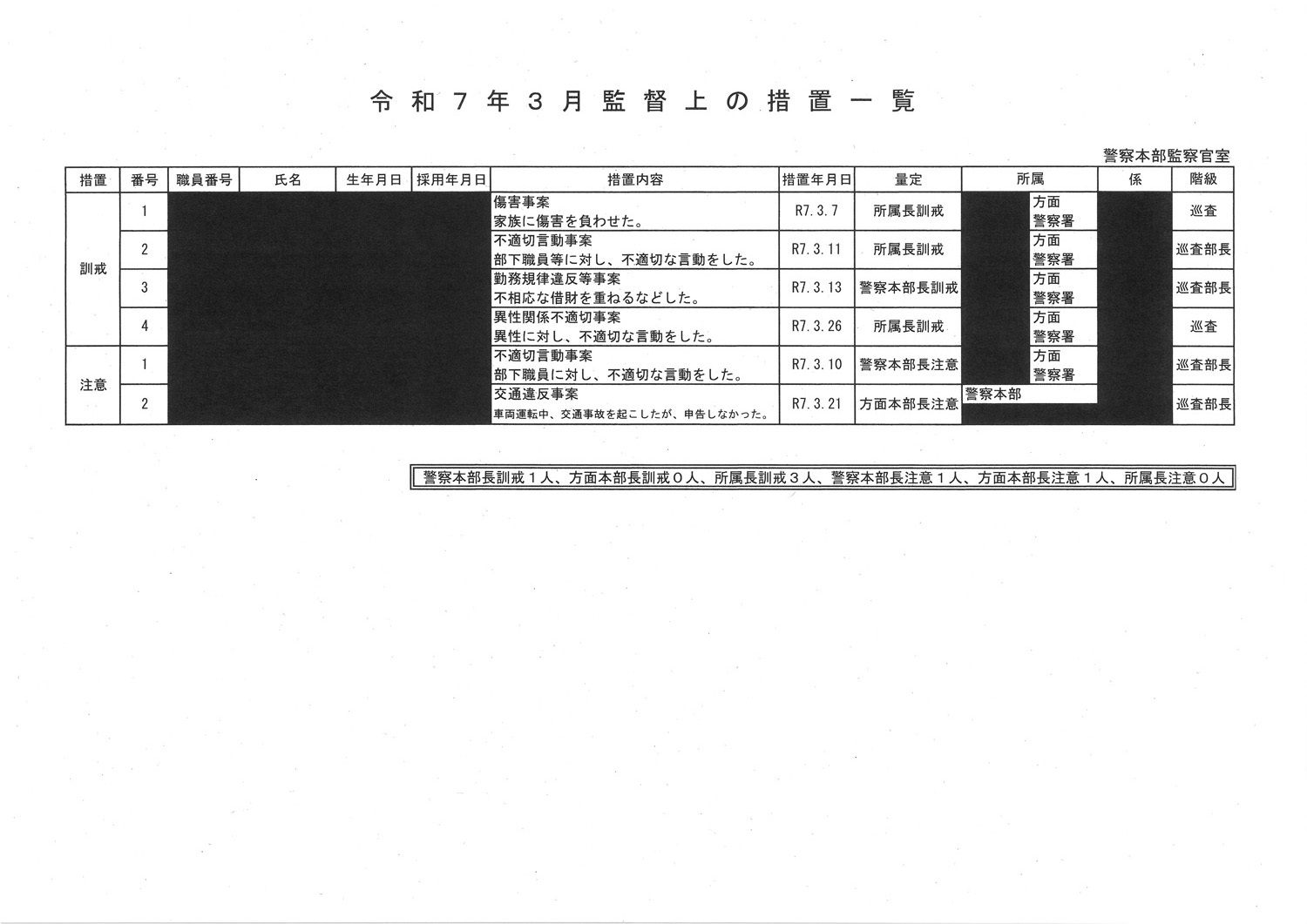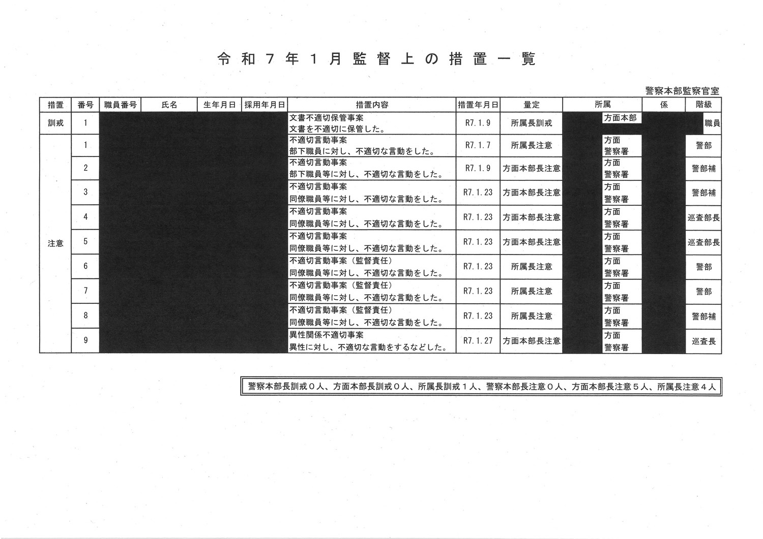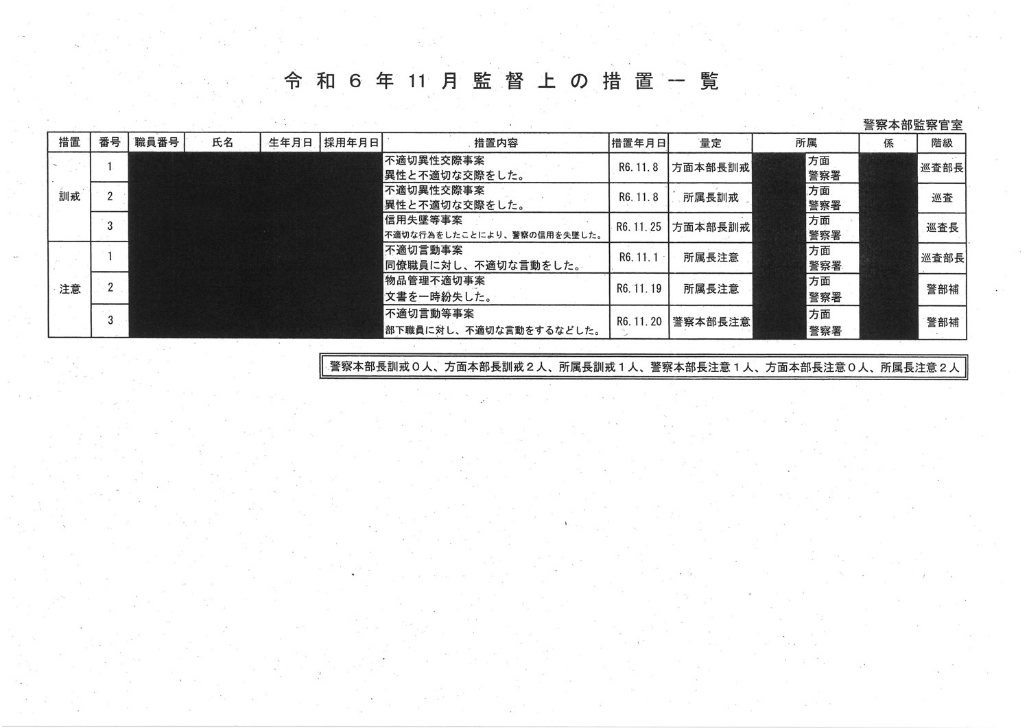 警察庁の『指針』では、勤務時間外の不祥事で「減給」以下の事案は報道発表の対象とならない
