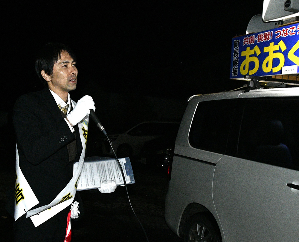 前回の町長選で惜敗した町議の越前谷由樹氏