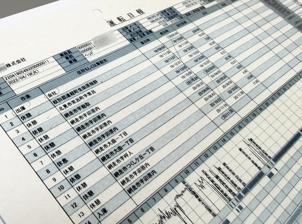 「休憩」表記で埋め尽くされた、男性の『運転日誌』
