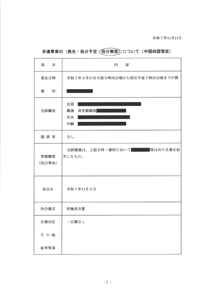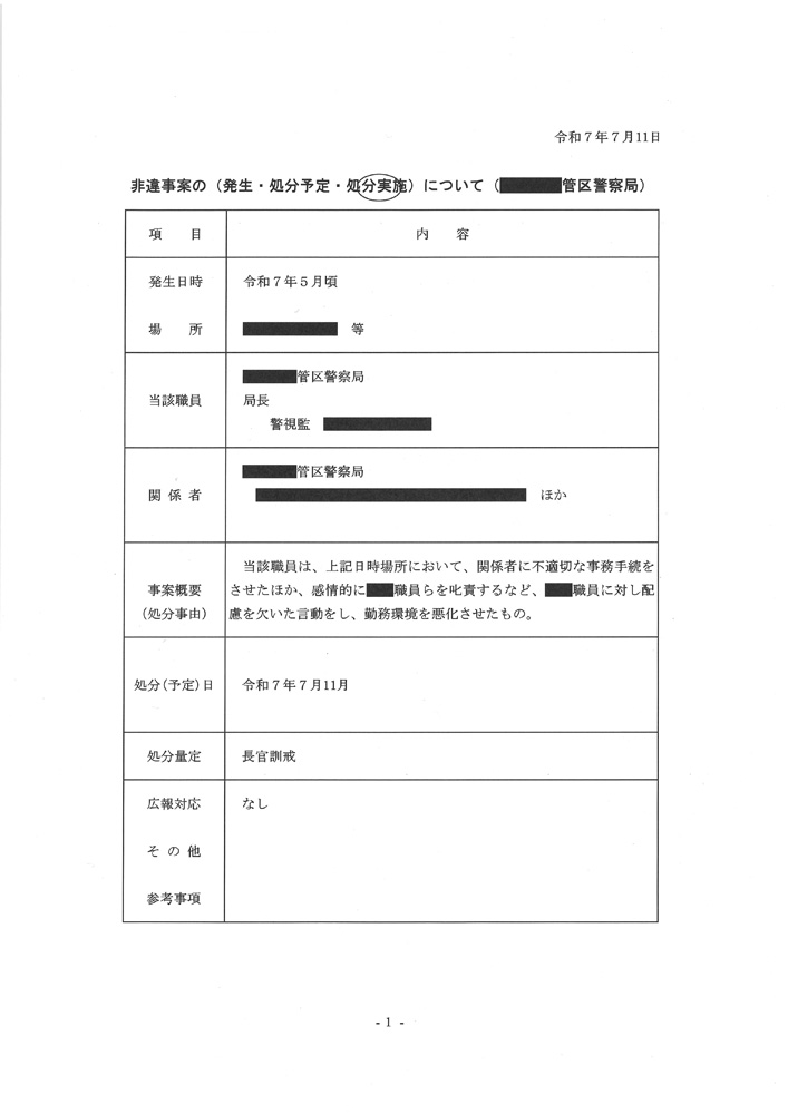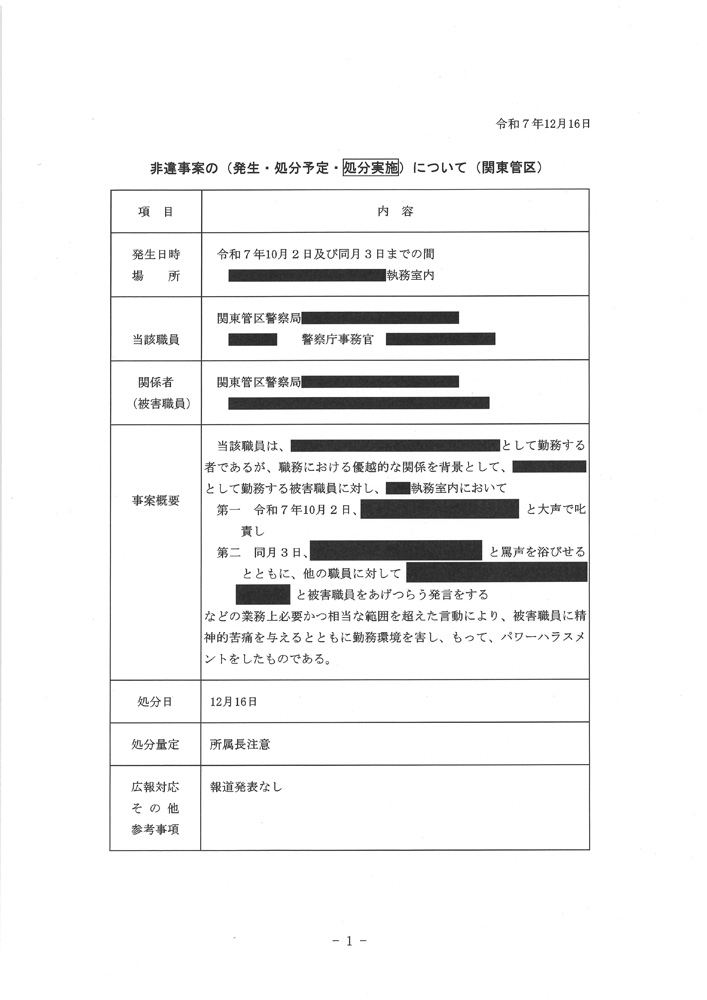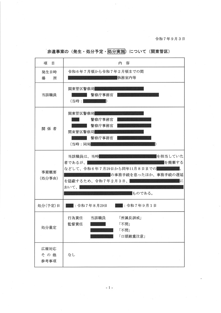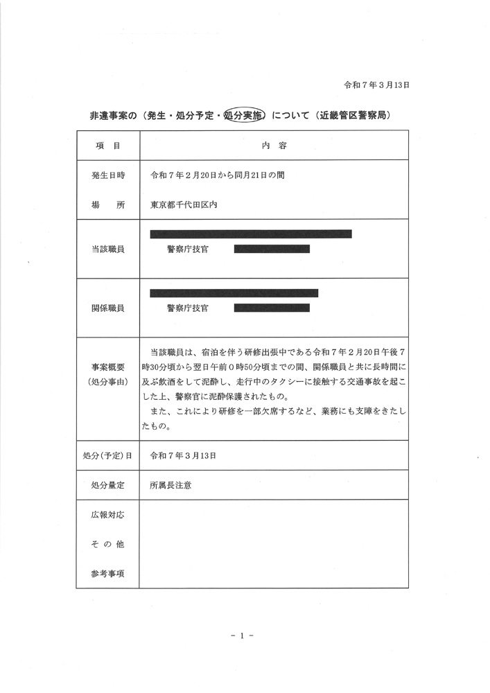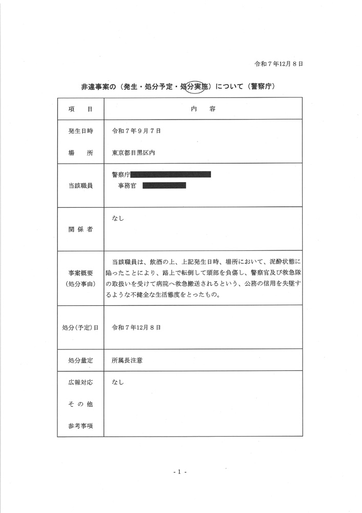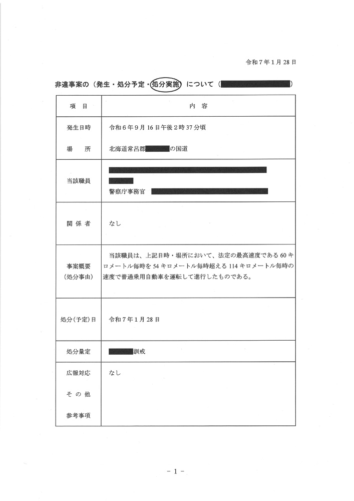 全国の都道府県警察を監督する警察庁(楠芳伸長官)が2月上旬、昨年1年間の懲戒処分数を報道発表した。公表資料によると、2025年に記録された懲戒処分は人員ベースで337件。多くは北海道を含む各地の地方警察で起きた不祥事への処分だが、中には僅かながら中央官庁たる警察庁での処分事案もあった。各件の内容は発表されていないが、情報公開制度を使って概要を知ることは可能。実際にそれをやってみた結果を、急ぎ報告しておきたい。