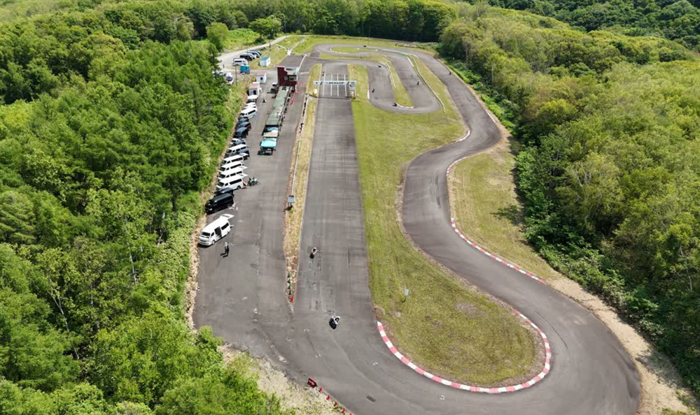 白樺の木々に囲まれた中に広がるコースは全長800メートル、高低差7メートルで8カ所のコーナーを有する本格的サーキット。開業は27年前。清田区真栄にあったコースを当時の経営者がこの地に移設、約6千坪の敷地に整備したものでJAF公認コースでもあった。以来、バイクやカートを愛するコアなモータースポーツファンに親しまれてきた。