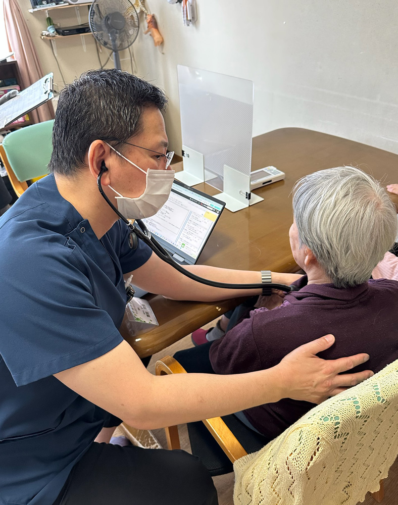 訪問先で診療に当たる粟田院長