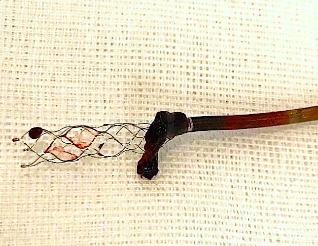 ステントリトリーバーと吸引カテーテルで取り出された脳血管内の血栓