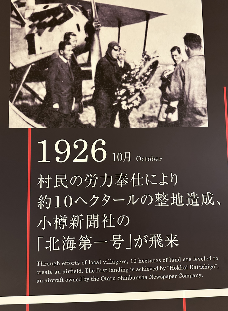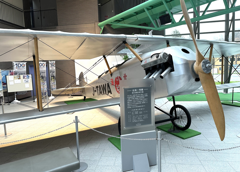 南千歳駅側の空港公園には千歳に初めて降り立った北海一号機のモニュメントがある