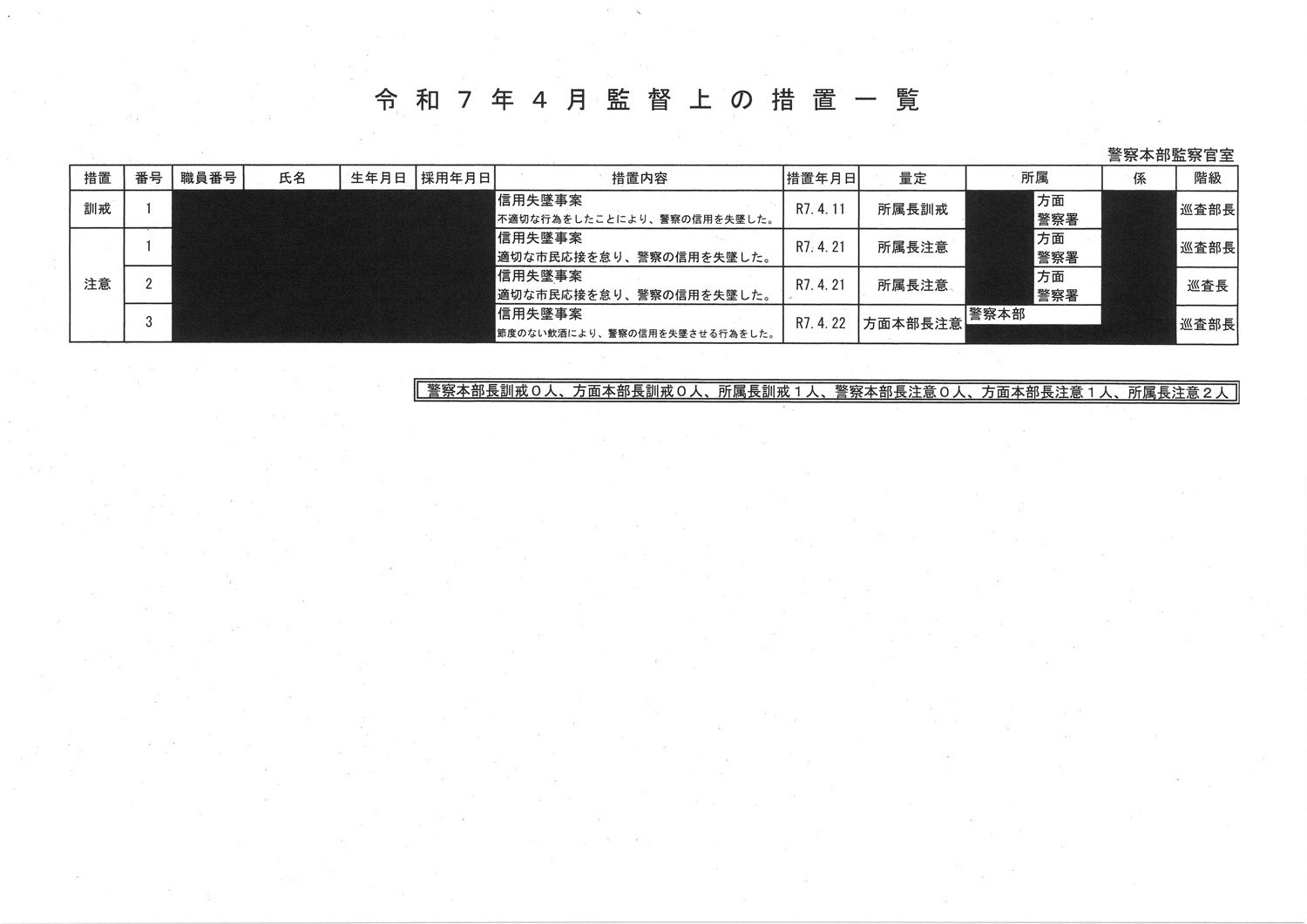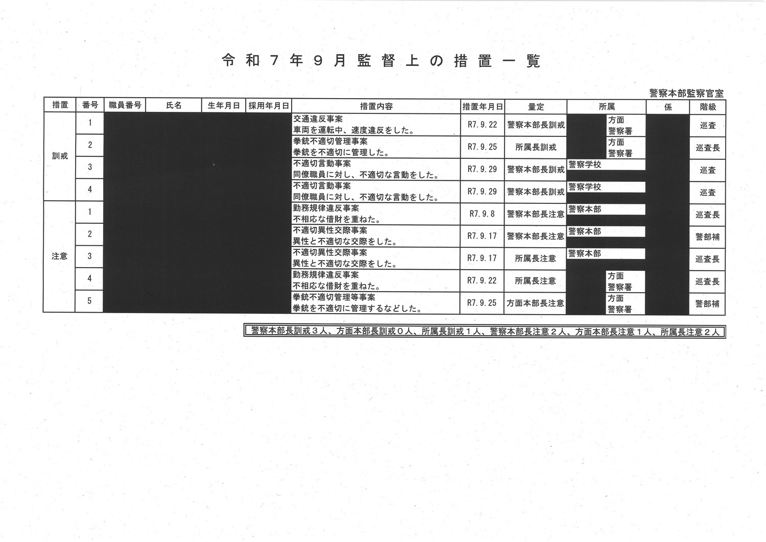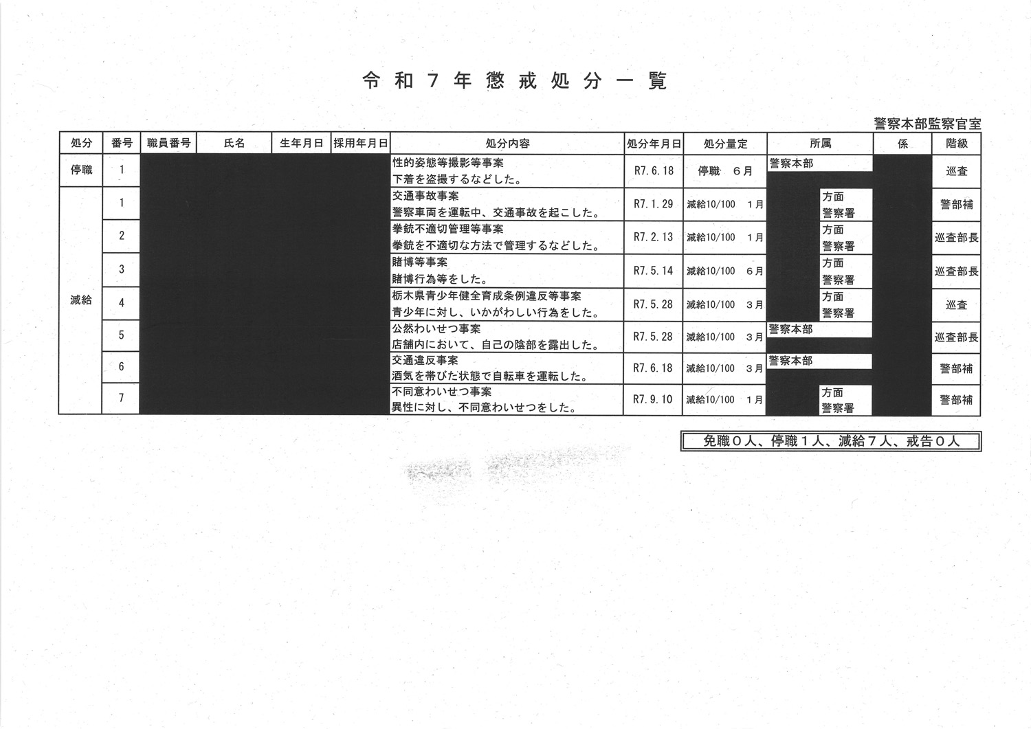 警察庁の『指針』では、勤務時間外の不祥事で「減給」以下の事案は報道発表の対象とならない