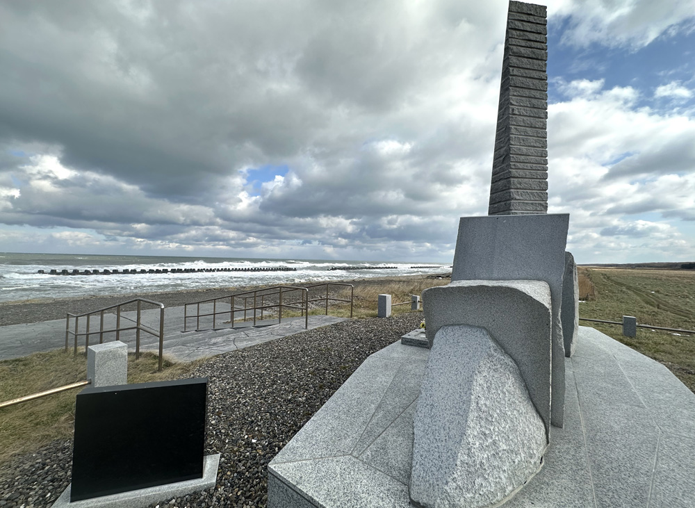 浮遊機雷の処理で大爆発事故があったポント浜に建つ機雷殉職の塔