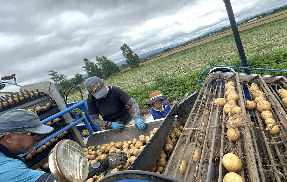 有機農産物の柱のひとつ・ジャガイモの収穫作業(はるか農園提供)