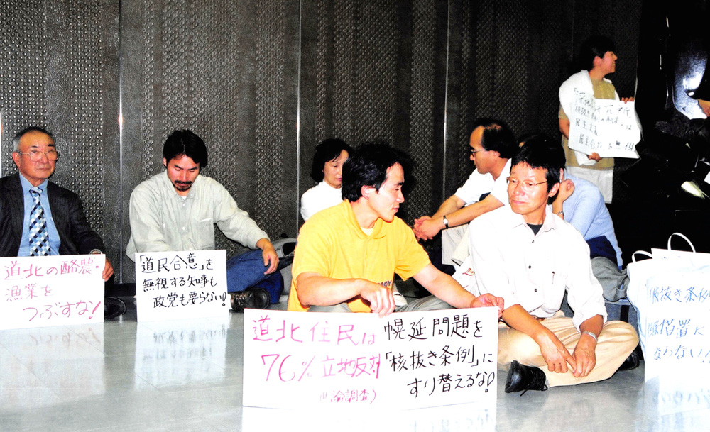 80年代に動燃(現日本原子力研究開発機構)が道北の幌延町で進めようとした「貯蔵工学センター」の計画は、道民や道庁、道議会などの反対に遭って90年代初めには「立地断念」の寸前になった。しかし、政府や動燃は巻き返しを図り、同センターの中核施設と位置づけていた「深地層試験場」に絞って建設を模索。当時の堀達也知事の支持母体にも働きかけ、98年には同試験場の単独立地を申し入れるに至る。こうした動きに道北の住民グループを中心にして再び反対の声が広がり、知事室前での座り込みなどを含む抵抗運動が展開された──。第2回は、立地断念の寸前から2000年10月の堀知事による深地層試験場の立地受け入れに至るまでの経緯をふり返る。