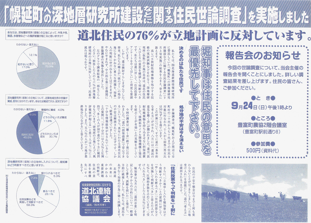 道北連絡協議会は住民1000人を対象に世論調査を実施。その結果を伝えるチラシ