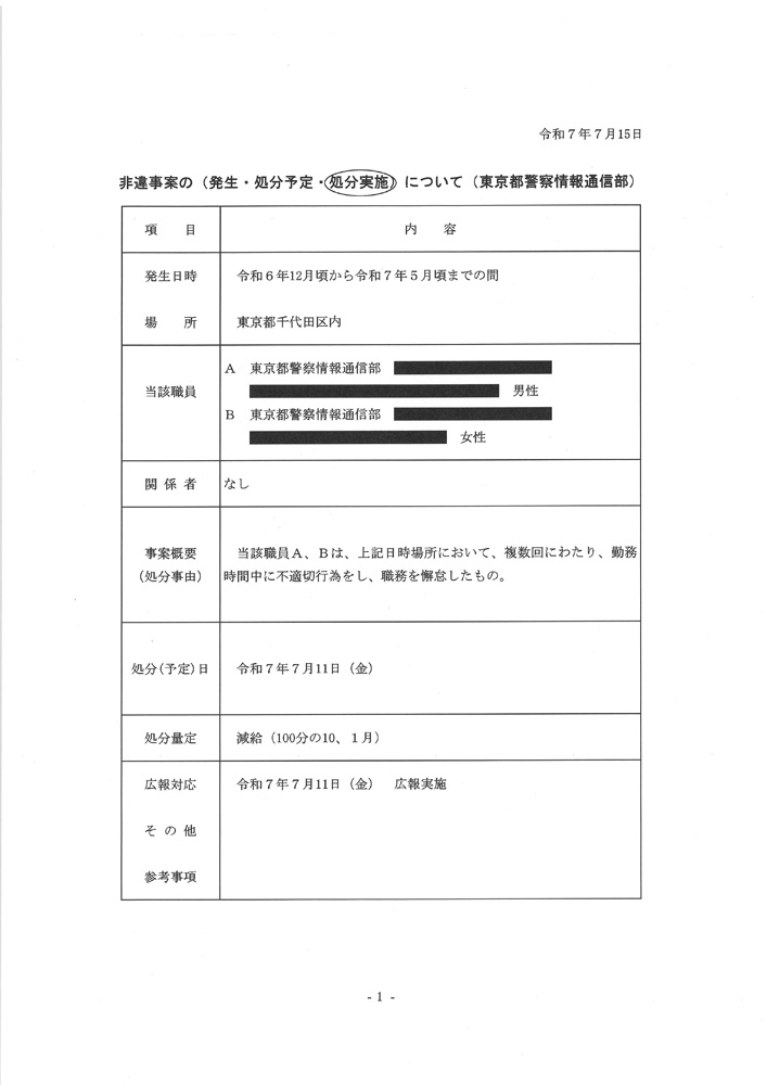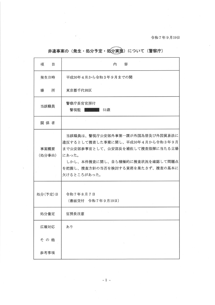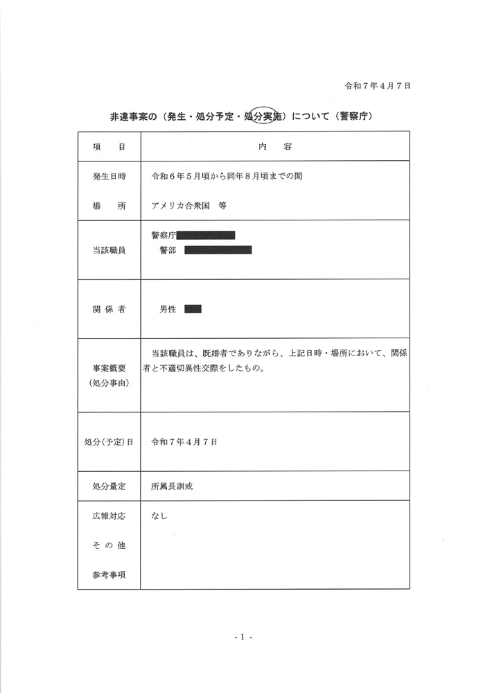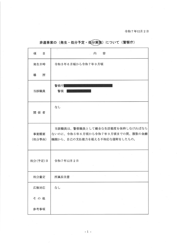 全国の都道府県警察を監督する警察庁(楠芳伸長官)が2月上旬、昨年1年間の懲戒処分数を報道発表した。公表資料によると、2025年に記録された懲戒処分は人員ベースで337件。多くは北海道を含む各地の地方警察で起きた不祥事への処分だが、中には僅かながら中央官庁たる警察庁での処分事案もあった。各件の内容は発表されていないが、情報公開制度を使って概要を知ることは可能。実際にそれをやってみた結果を、急ぎ報告しておきたい。