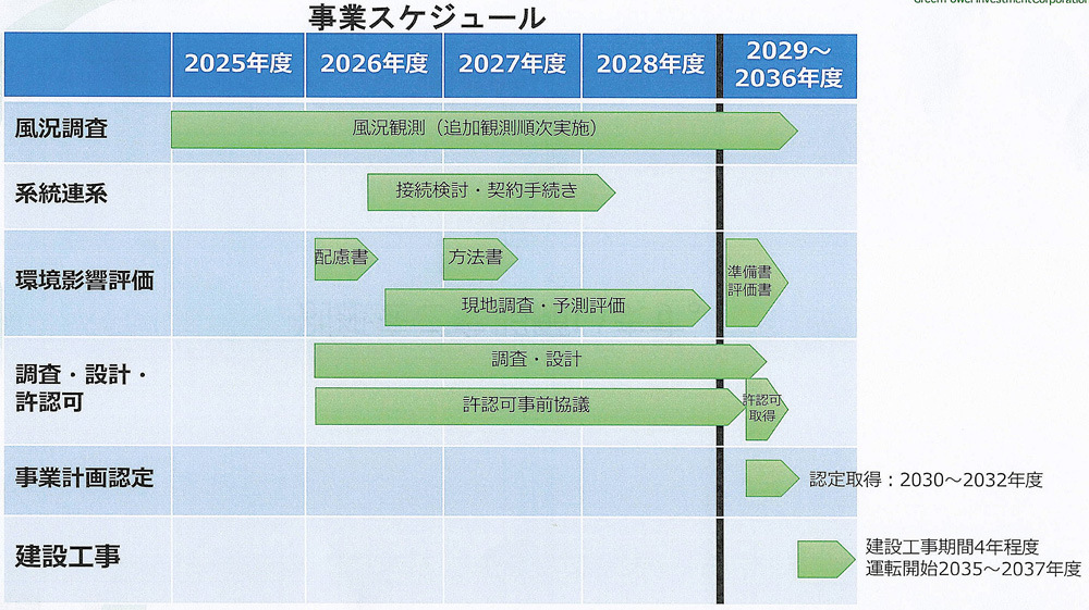 グリーンパワー社による事業スケジュール(説明会の配布資料から)